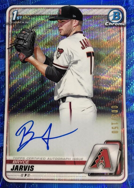Bryce Jarvis 2020 1st Bowman Chrome Draft Blue Wave Auto /150 Diamondbacks W/Mag