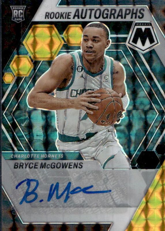 The Bryce McGowens 2022 Mosaic #RA-MCG Rookie Autographs - Choice Black Gold /8 card in Raw condition has not changed in price in the last 30 days and was last sold for $25.00 .