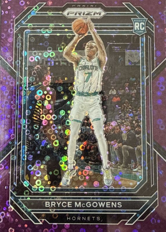 The Bryce McGowens 2022 Prizm #222 Fast Break Purple /75 Rookie card in Raw condition has moved up $7.00 (+233%) in the last 30 days and was last sold for $10.00 .