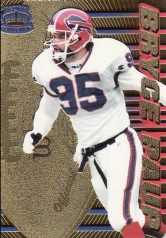 The Bryce Paup 1996 Pacific Dynagon #P-13 Base card is 1 of 2 Bryce Paup's card variations in the 1996 Pacific Dynagon set being tracked by Sports Card Investor, including Gold Tandems.