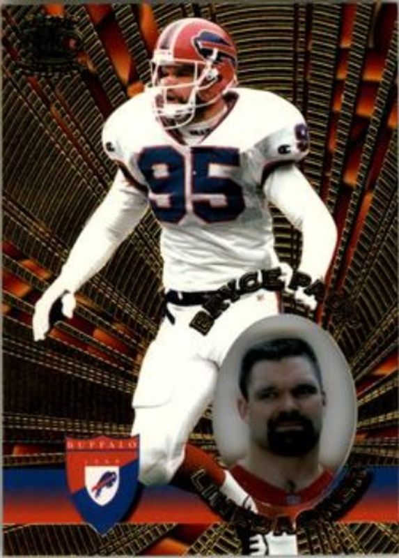 The Bryce Paup 1996 Pacific Invincible #I-18 Base card is 1 of 5 Bryce Paup's card variations in the 1996 Pacific Invincible set being tracked by Sports Card Investor, including Bronze, Platinum Blue, Silver, and Smash Mouth.
