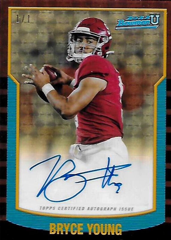 Bryce Young 2021 Bowman University #BCPA-BY Chrome Prospect Auto - Superfractor /1 (1st) RAW Price Guide