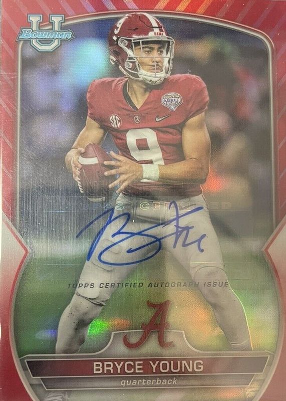 Auctions Ending Soon for Bryce Young 2022 Bowman Chrome University #1 Prospect Auto - Red Refractor /5 RAW