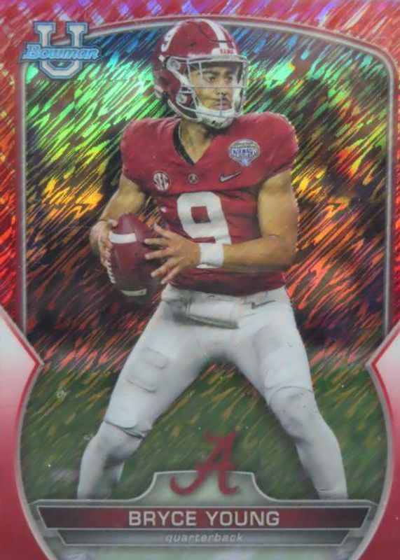 Auctions Ending Soon for Bryce Young 2022 Bowman Chrome University #1 Prospects - Red Shimmer Refractor /10 RAW