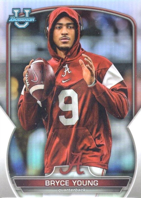 The Bryce Young 2022 Bowman Chrome University #1 Prospects - SP Variation (Hoodie) card in Raw condition has not changed in price in the last 30 days and was last sold for $2.35 .