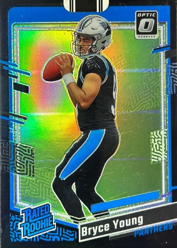 This card is 1 of 97 Bryce Young's card variations in the 2023 Optic set being tracked by Sports Card Investor, including Base, Blue Hyper, Blue Scope, Green Hyper, and Green Velocity.