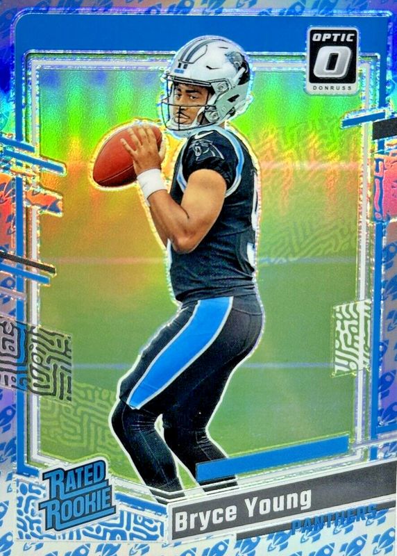 The Bryce Young 2023 Optic #213 Rocket /(SSP) Rookie card in Raw condition has moved up $15.00 (+75.0%) in the last 30 days and was last sold for $35.00 .