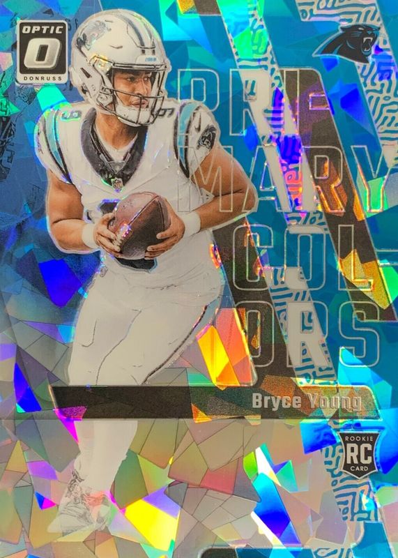 The Bryce Young 2023 Optic #3 Rookie Primary Colors - Ice /15 card in Raw condition has not changed in price in the last 30 days and was last sold for $56.00 .