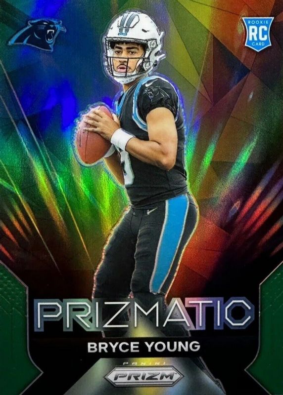 The Bryce Young 2023 Prizm #4 Prizmatic - Green Rookie card in Raw condition has moved up $1.51 (+152%) in the last 30 days and was last sold for $2.50 .
