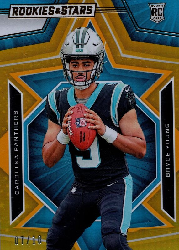 The Bryce Young 2023 Rookies & Stars #110 Gold /10 card in Raw condition has not changed in price in the last 30 days and was last sold for $50.00 .