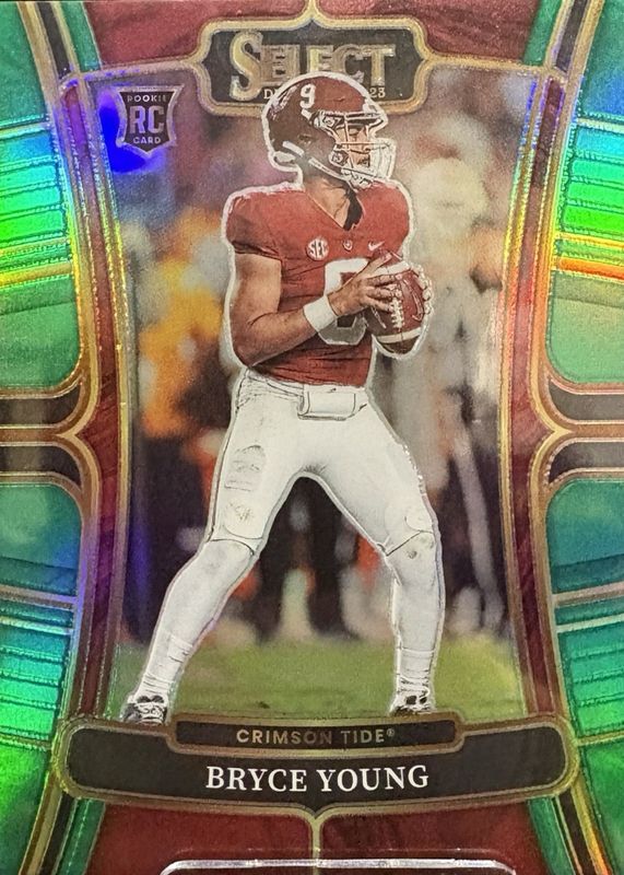 The Bryce Young 2023 Select Draft Picks #1 Concourse Green /5 Rookie card in Raw condition has not changed in price in the last 30 days and was last sold for $60.00 .