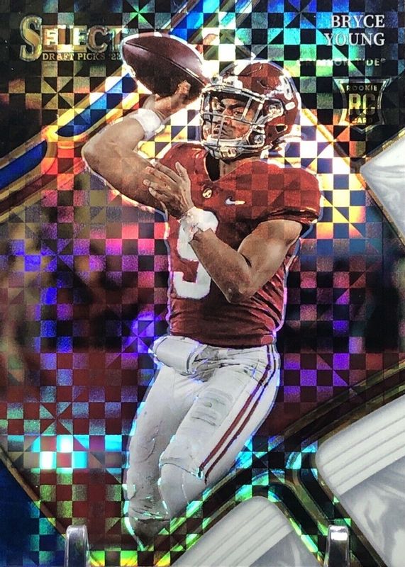 Auctions Ending Soon for Bryce Young 2023 Select Draft Picks #101 Field Level Blue & White Squares /100 Rookie RAW