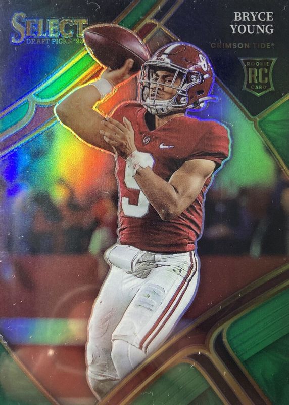 The Bryce Young 2023 Select Draft Picks #101 Field Level Green /5 Rookie card in Raw condition has not changed in price in the last 30 days and was last sold for $102.00 .