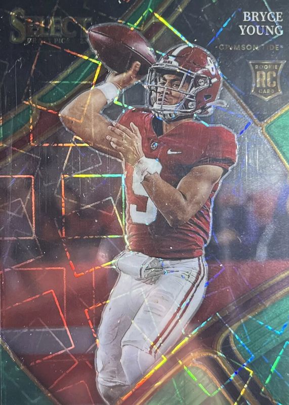 The Bryce Young 2023 Select Draft Picks #101 Field Level Green Lazer Rookie card in Raw condition has not changed in price in the last 30 days and was last sold for $17.99 .