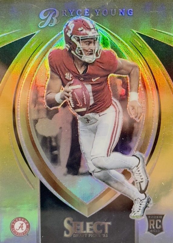 The Bryce Young 2023 Select Draft Picks #SCR-BY Select Certified Rookies - Gold /10 card in Raw condition has not changed in price in the last 30 days and was last sold for $80.00 .