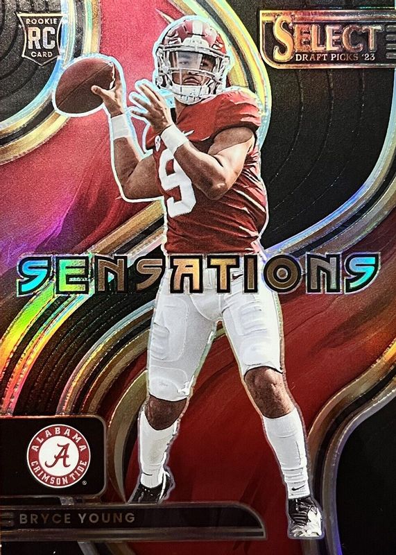 The Bryce Young 2023 Select Draft Picks #SEN-BY Sensations - Black /1 Rookie card in Raw condition has not changed in price in the last 30 days and was last sold for $264.00 .