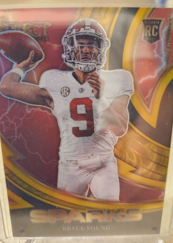 The Bryce Young 2023 Select Draft Picks #SPR-BY Sparks - Gold /10 Rookie card in Raw condition has not changed in price in the last 30 days and was last sold for $50.00 .