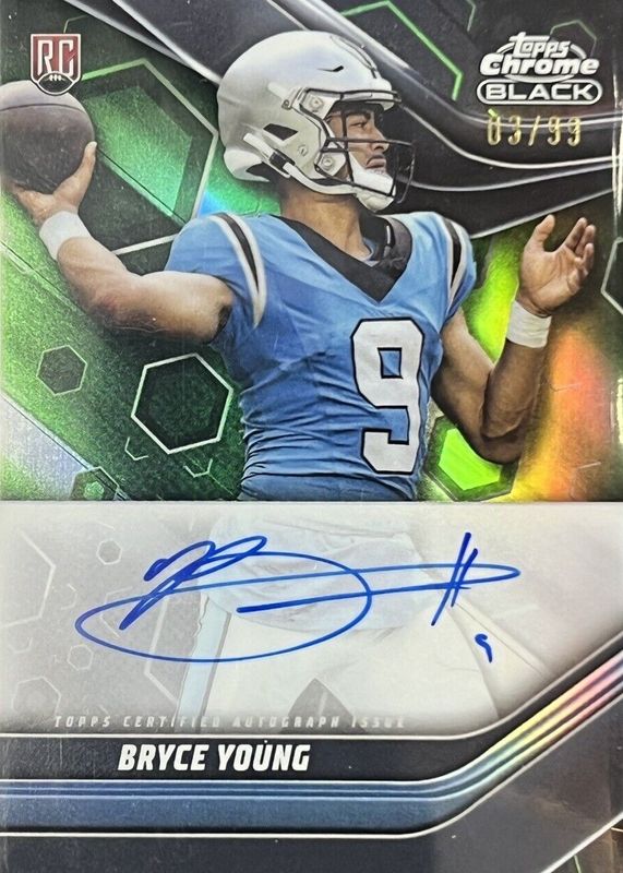 BRYCE YOUNG 2023 TOPPS CHROME BLACK COMPOSITE GREEN ROOKIE RC AUTO /99 Q4434