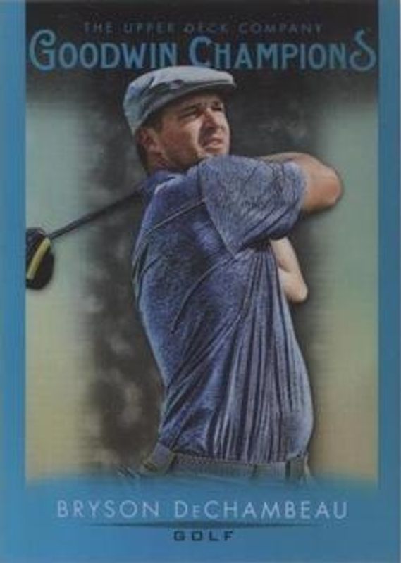 The Bryson DeChambeau 2021 Upper Deck Goodwin Champions #5 Platinum Blue card is 1 of 65 Bryson DeChambeau's card variations in the 2021 Upper Deck Goodwin Champions set being tracked by Sports Card Investor, including #115 Base, #73 Base, #5 Base, #73 Black & White, and #5 Black & White.