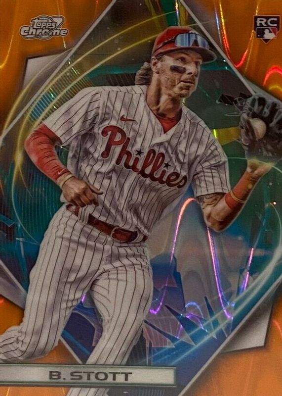 Auctions Ending Soon for Bryson Stott 2022 Topps Chrome Cosmic #17 Orange Galactic Refractor /25 Rookie RAW