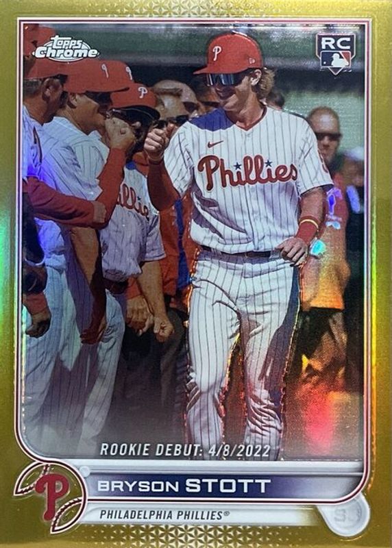 Auctions Ending Soon for Bryson Stott 2022 Topps Chrome Update #USC128 Rookie Debut - Gold Refractor /50 RAW