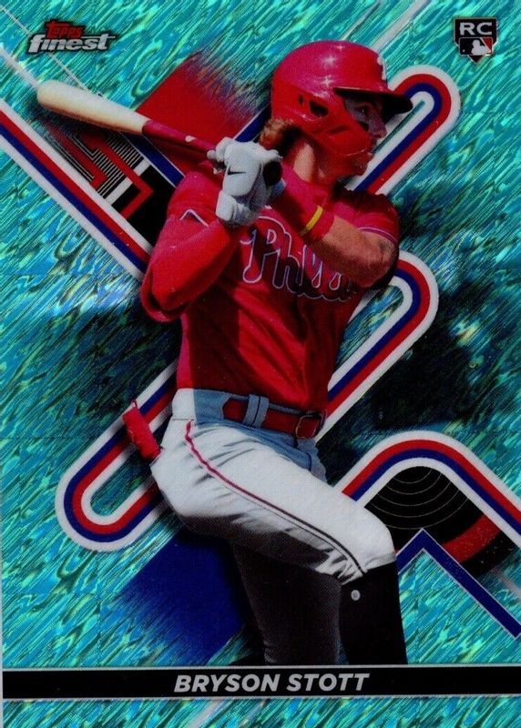 2022 Topps Finest #13 Bryson Stott Aqua Shimmer Refractor #077/175 Phillies RC
