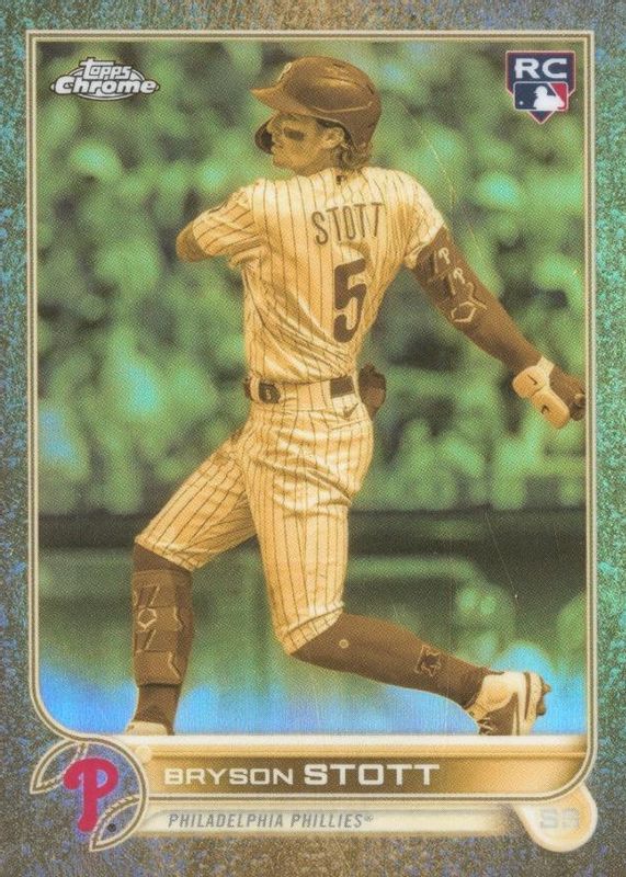 This card is 1 of 5 Bryson Stott's card variations in the 2022 Topps Gilded Collection set being tracked by Sports Card Investor, including Base /99, Cast in Gold - Superfractor /1, Topps Chrome Cast in Gold Autographs /199, and Topps Chrome Cast in Gold Autographs - SuperFractor /1.