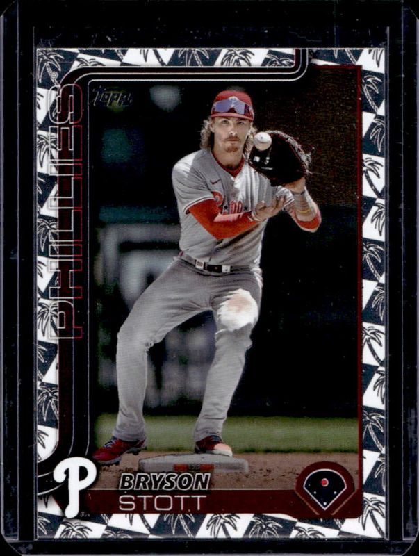 The Bryson Stott 2025 Topps #147 Spring Training card is 1 of 103 Bryson Stott's card variations in the 2025 Topps set being tracked by Sports Card Investor, including Base, Aqua Holo Foil, Diamante Foil, Holo Foil, and Pink Diamante Foil.
