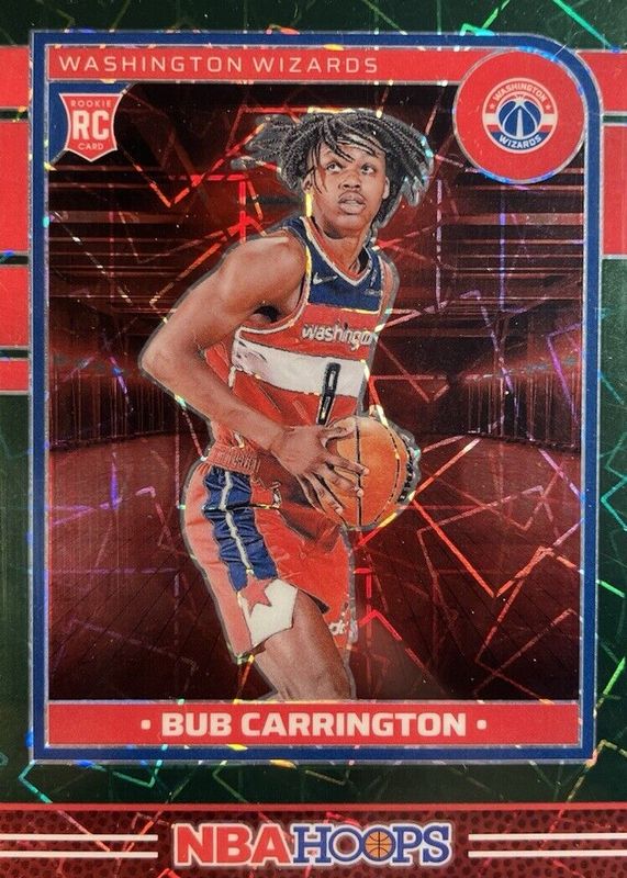 The Bub Carrington 2024 Hoops #244 Premium Green Lazer /25 Rookie card in Raw condition has not changed in price in the last 30 days and was last sold for $23.02 .