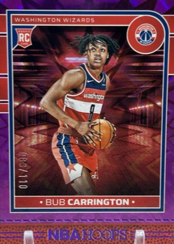 Bub Carrington 2024 Hoops #244 Purple Explosion /110 Rookie RAW Price Guide