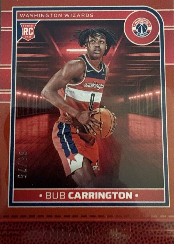 The Bub Carrington 2024 Hoops #244 Red /75 Rookie card in Raw condition has not changed in price in the last 30 days and was last sold for $1.75 .