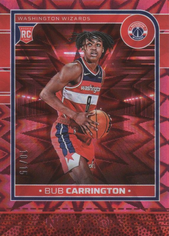 The Bub Carrington 2024 Hoops #244 Red Explosion /15 Rookie card in Raw condition has not changed in price in the last 30 days and was last sold for $55.00 .
