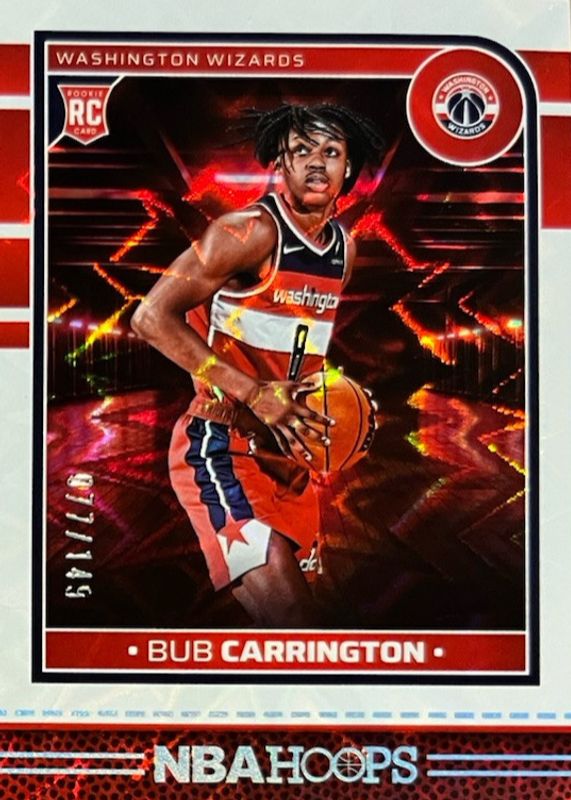 This card is 1 of 58 Bub Carrington's card variations in the 2024 Hoops set being tracked by Sports Card Investor, including Base, Blue, Impulse, Premium, and Premium Checkerboard.