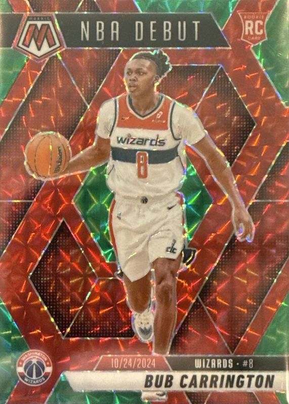 Bub Carrington 2024 Mosaic #259 NBA Debut - Choice Red & Green Rookie RAW Price Guide