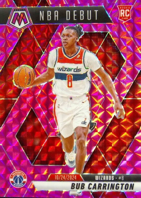 2024-25 Mosaic Bub Carrington RC Pink Rookie NBA Debut #/175 Wizards