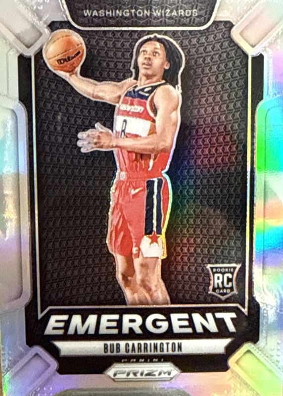BUB CARRINGTON 2024-25 PANINI PRIZM EMERGENT ROOKIE SILVER WIZARDS RC