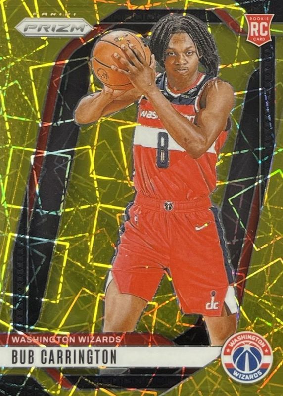 This card is 1 of 109 Bub Carrington's card variations in the 2024 Prizm set being tracked by Sports Card Investor, including Base, China Variation, Choice Blue Yellow Green, Fast Break, and Green.