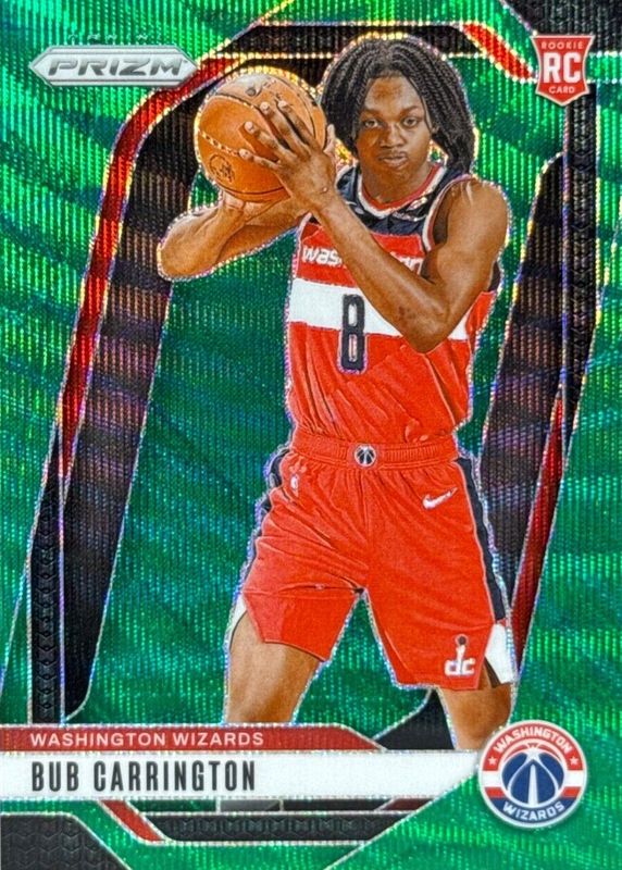 This card is 1 of 109 Bub Carrington's card variations in the 2024 Prizm set being tracked by Sports Card Investor, including Base, China Variation, Choice Blue Yellow Green, Fast Break, and Green.