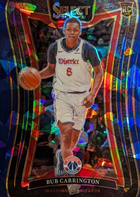 2024-25 Panini Select #386 Bub Carrington Wizards Blue Cracked Ice Prizm RC