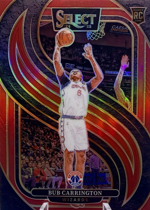 2024-25 Panini Select Bub Carrington Premier RC Red Prizm Rookie #/199 Wizards