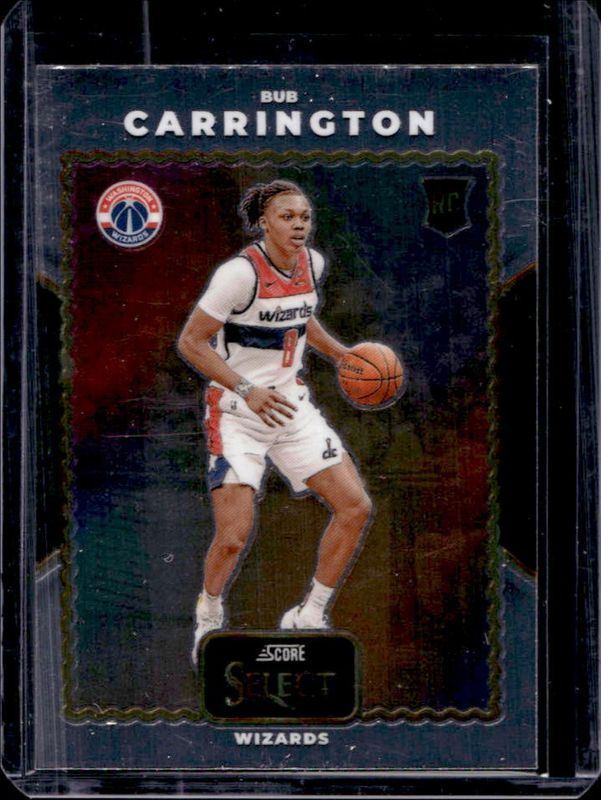 The Bub Carrington 2024 Select #7 Score Select Throwback Rookie card is 1 of 352 Bub Carrington's card variations in the 2024 Select set being tracked by Sports Card Investor, including Concourse, Courtside, Mezzanine, Premier Level, and Concourse Blue Cracked Ice.