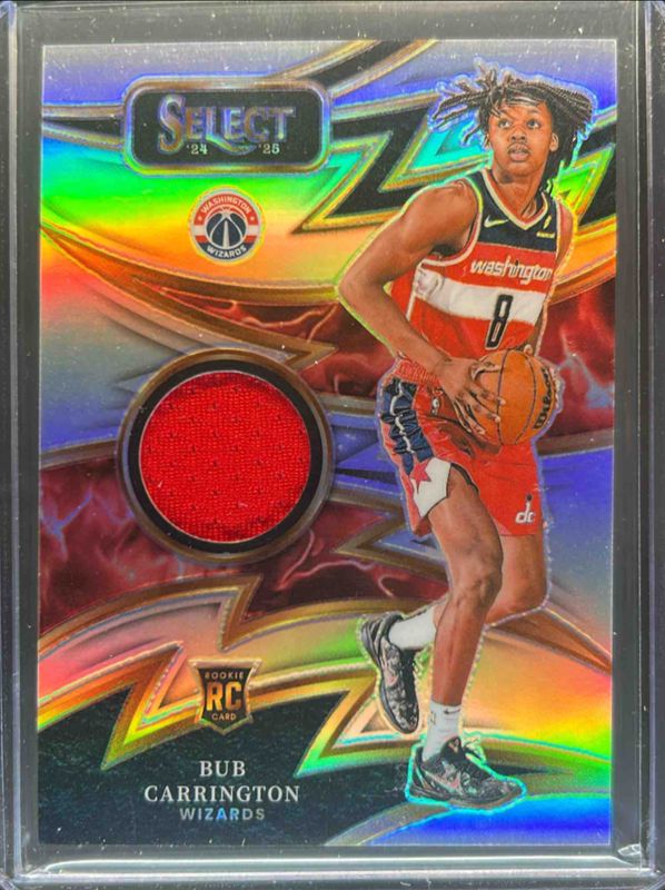 The Bub Carrington 2024 Select #SPK-BUB Sparks Rookie card is 1 of 352 Bub Carrington's card variations in the 2024 Select set being tracked by Sports Card Investor, including Concourse, Courtside, Mezzanine, Premier Level, and Concourse Blue Cracked Ice.