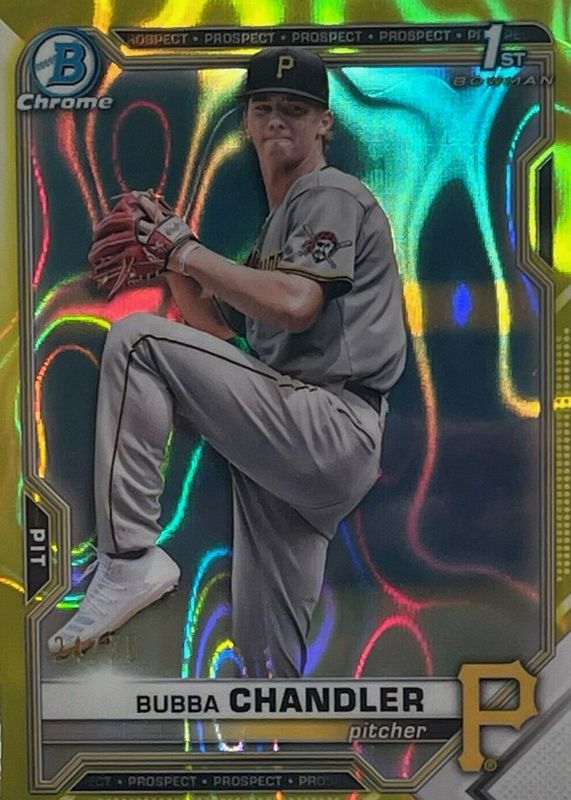 2021 Bowman Chrome Yellow Lava Refractor BUBBA CHANDLER RC, PIRATES #BDC-41 /75