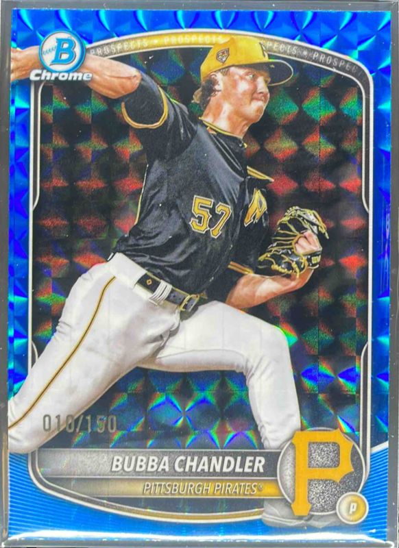 The Bubba Chandler 2025 Bowman Chrome #BCP-171 Chrome Prospects - Blue Geometric Refractor /250 card is 1 of 64 Bubba Chandler's card variations in the 2025 Bowman Chrome set being tracked by Sports Card Investor, including Chrome Autographs Relic, Prospects, Prospects - Mini-Diamond Refractor, Prospects - Shimmer Refractor, and Prospects - Geometric Refractor /499.
