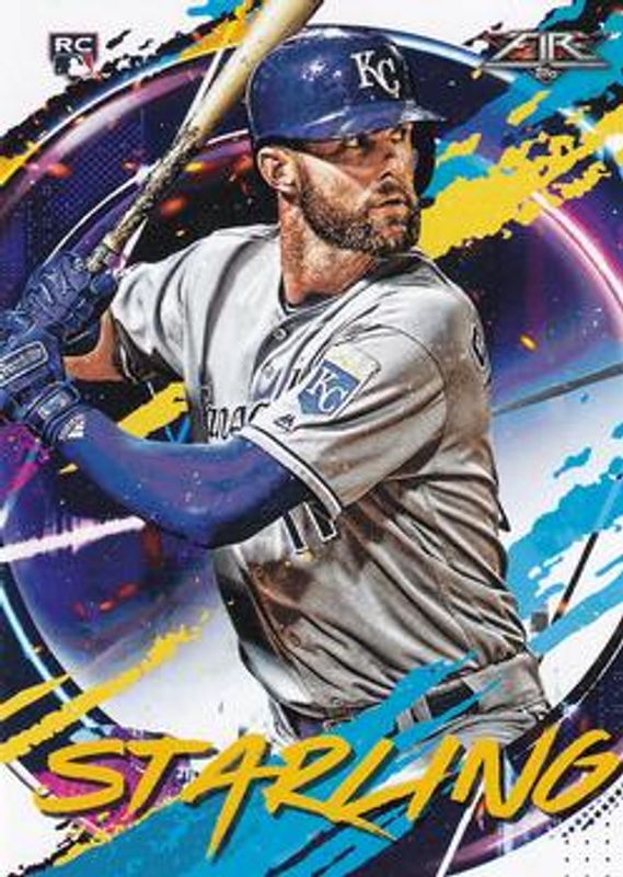 The Bubba Starling 2020 Topps Fire #36 Base Rookie card is 1 of 12 Bubba Starling's card variations in the 2020 Topps Fire set being tracked by Sports Card Investor, including Blue Chip, Flame, Gold Minted, Onyx, and Red Blaze.