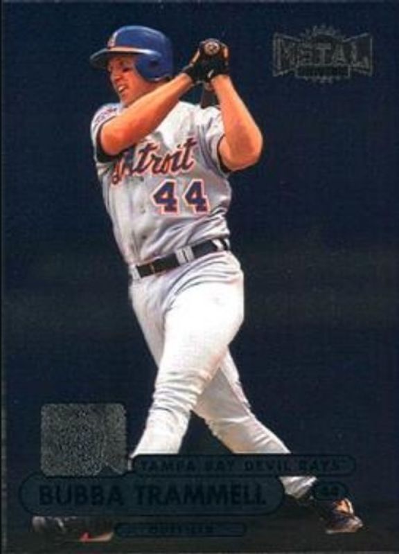 The Bubba Trammell 1998 Metal Universe #163 Base card is 1 of 2 Bubba Trammell's card variations in the 1998 Metal Universe set being tracked by Sports Card Investor, including Precious Metal Gems /50.