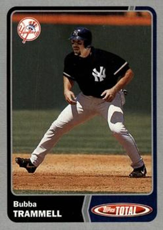 The Bubba Trammell 2003 Topps Total #469 Silver card is 1 of 2 Bubba Trammell's card variations in the 2003 Topps Total set being tracked by Sports Card Investor, including Base.
