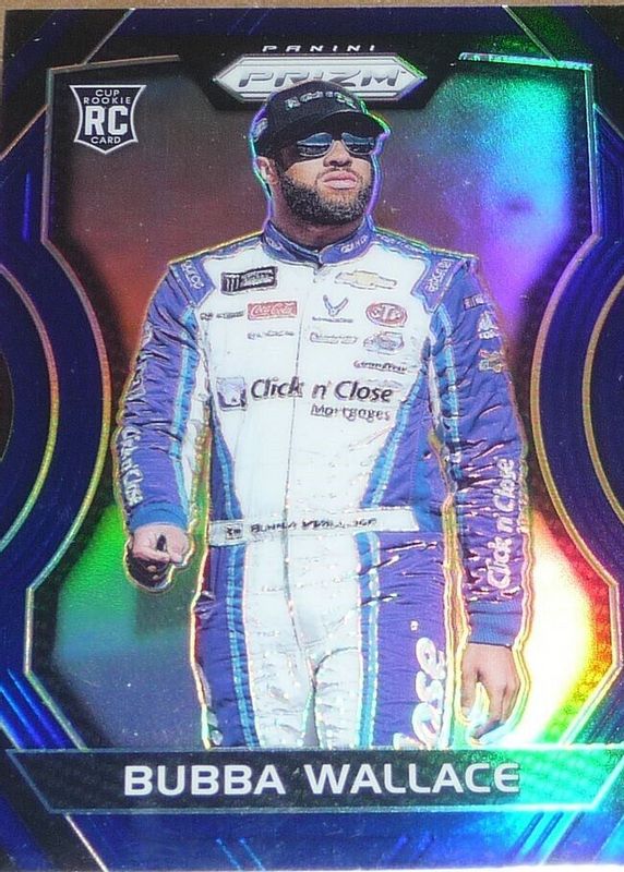 The Bubba Wallace 2018 Prizm NASCAR #11 Blue /99 Rookie card in Raw condition has not changed in price in the last 30 days and was last sold for $2.30 .