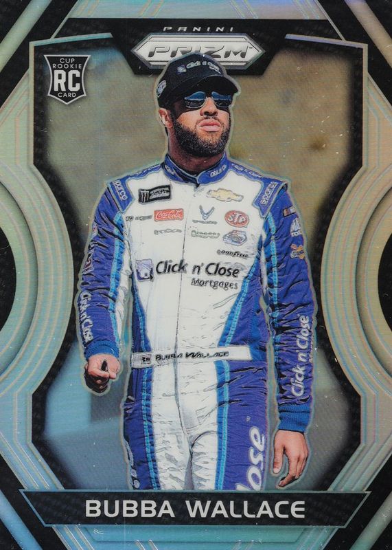 The Bubba Wallace 2018 Prizm NASCAR #11 Silver Rookie card in Raw condition has not changed in price in the last 30 days and was last sold for $1.75 .