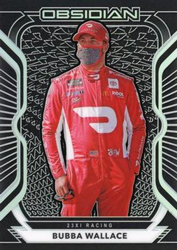 The Bubba Wallace 2021 Chronicles NASCAR #18 Obsidian card is 1 of 77 Bubba Wallace's card variations in the 2021 Chronicles NASCAR set being tracked by Sports Card Investor, including Base, Blue /199, Red /99, Purple /25, and Gold /10.